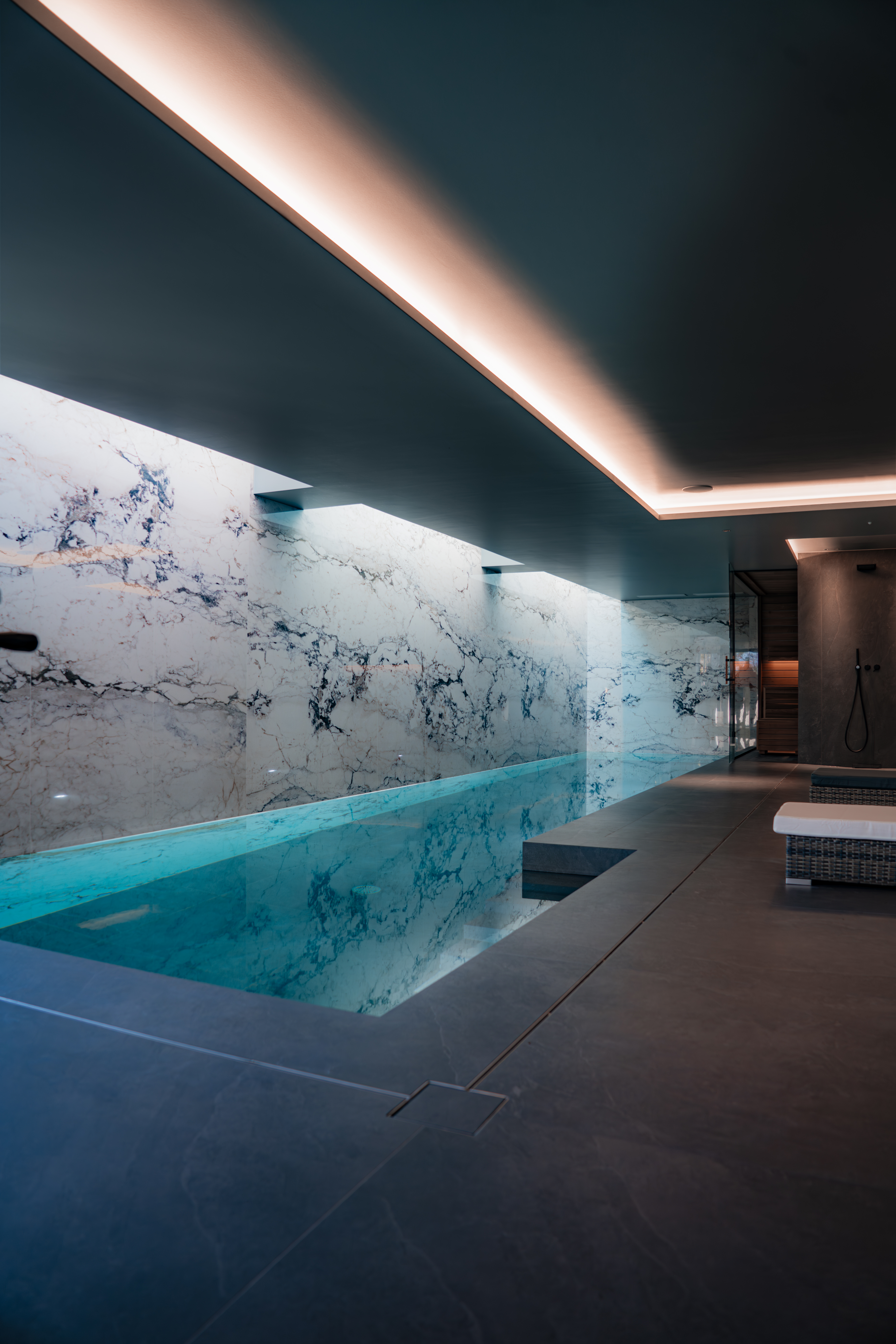 Des espaces wellness imaginés sur mesure, où matériaux, lumière et proportions créent un véritable lieu de régénération.