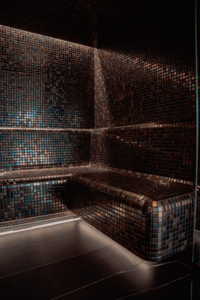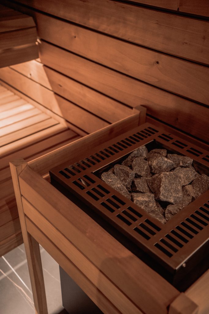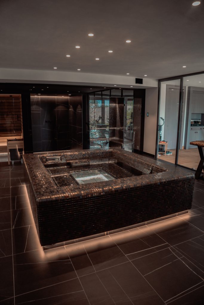 Espace wellness privé conçu comme une extension naturelle de la maison. Spa, sauna et hammam ont été intégrés dans un volume sobre, avec une attention portée aux accès, à la ventilation et à la gestion technique.
